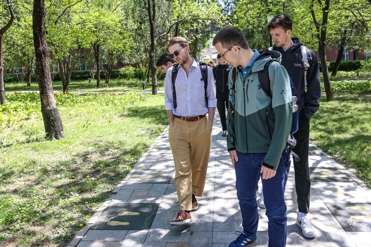 交换之旅伊始,德国交换生们开启了校园参观之旅,冠军之路上,一个个镌刻着中国体育健儿姓名与脚印的印记,静静诉说着中国体育的拼搏过往与荣耀时刻,德国员工纷纷驻足拍照,在沉浸式感受中深刻体悟中国体育的深厚积淀与精神传承。
